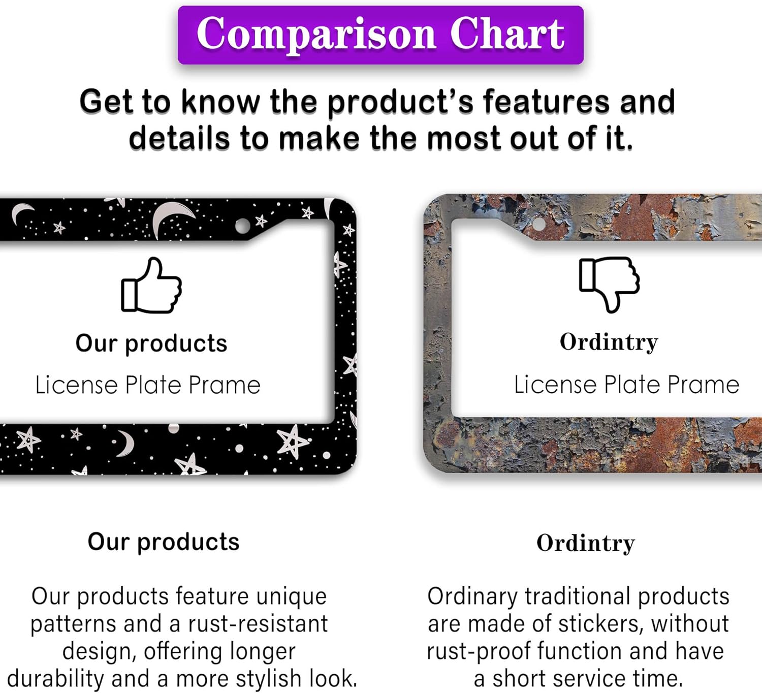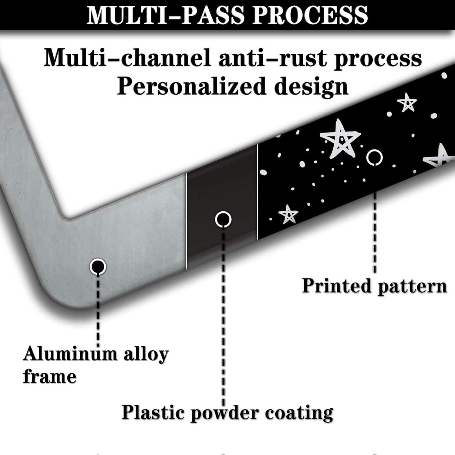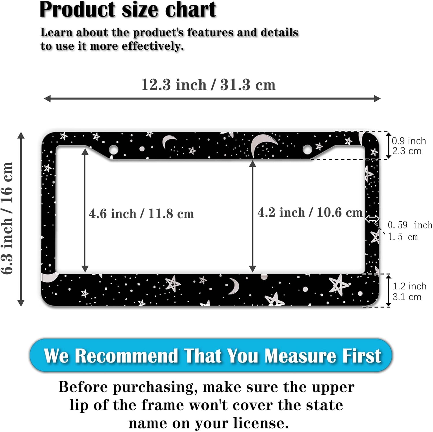 License Plate Frames Black and White License Plate Covers Night Moon Star Black Print Aluminum Metal Car Accessory 2 Pack with Screw Covers Set
