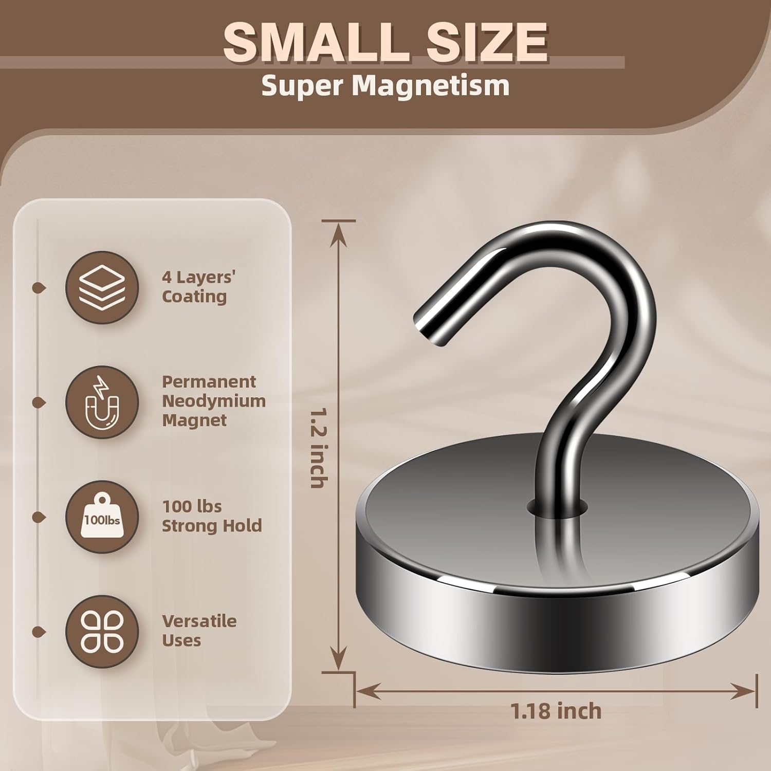 - ✔ VERSATILE USE- Neosmuk’s strong neodymium magnetic hooks were endowed with a strong capability for holding various items wherever there is iron or steel. This magnet hook is a perfect magnetic key holder. You can also hang your tools next to the toolbox with this magnetic hook. Our magnetic hooks are great for grill, pot, cup, utensils, and oven.