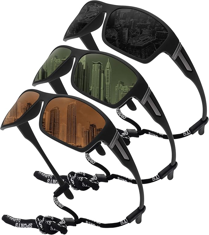 - 【GIFT PACKAGE AND ACCESSORIES】: Sunglasses *3,Brand Outer Box*1,Glasses bag *1,Glasses cleaning cloth *1,Stainless steel screwdriver *1,Polarized glasses test card *1,Glasses lanyard *3.