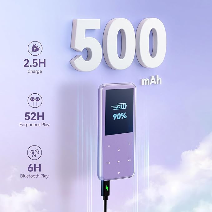 - 【Multi-function & Long battery life】 M3 MP3 player with Music Play, Video, Recording, Radio, Pictures, e-Books, Pedometer, A-B repeat, etc. Built-in 500mAh battery, it only takes 2.5 hours to fully charge and enjoy long hours of music. Perfect solution to replace mobile phone music, save mobile phone power. (To save power, the player will automatically power off after 5 minute of inactivity. You can turn it off in the settings.)