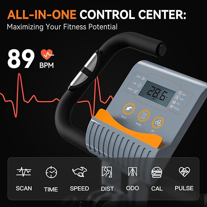 - SAVE SPACE & MOVE EASILY: The portable bike is easily adjustable, allowing for quick folding and upright. Its design enables easy storage in a small area, making it an ideal choice for small apartments or offices. The foldable bike comes with rollers on the front feet, facilitating effortless movement. Whether you're aiming to save space or seeking a portable exercise option, this workout bike for home gym is the ideal solution.