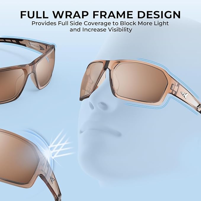 KastKing Chippewa Polarized Fishing Sunglasses, UV400 Protection Full Wrap Frame Sports Cycling Sunglasses, 1.0mm TAC Lenses