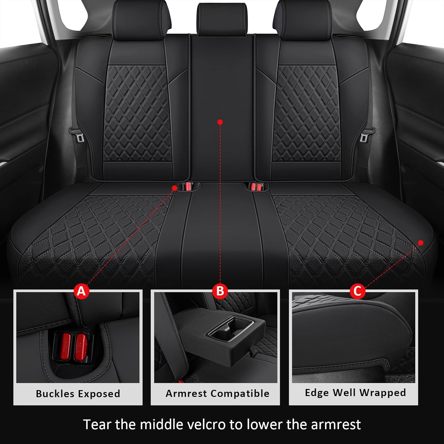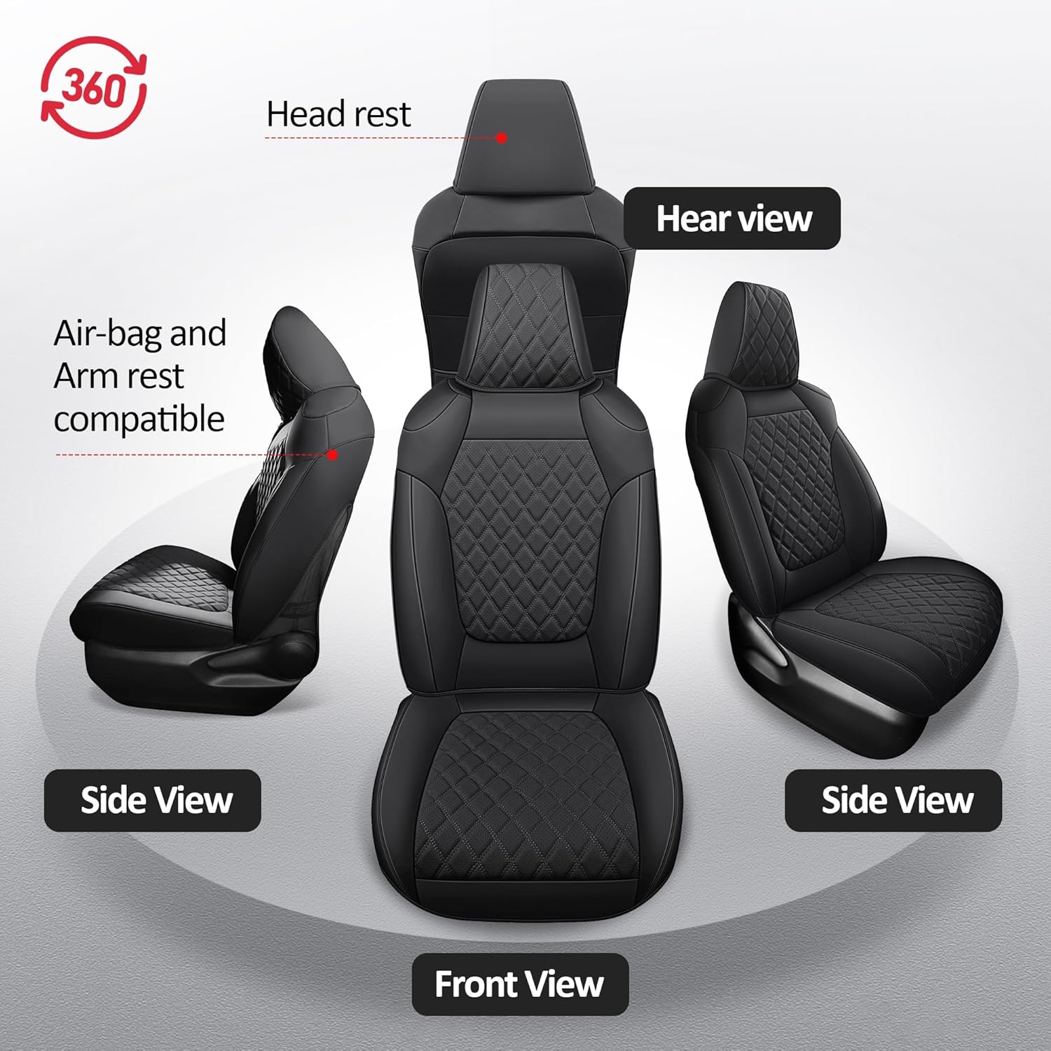- 【Premium Quality Material】Car Seat Covers Crafted from upgraded PU Leather , these seat covers are breathable, waterproof, and sweat-absorbent. Car seat protector offer a soft, comfortable feel while keeping your seats protected and stylish. Not for extreme heat: Prolonged sun exposure may cause slight stiffness – use a sunshade in hot climates.Note: Material has a slight synthetic smell initially (fades in 3-5 days).