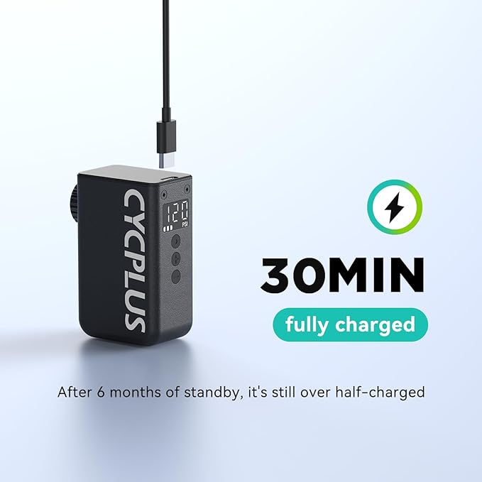 - 【Fast Charging】Only 30 minutes to be fully charged. With a full charge, it can inflate at least TWO 700*25C tires from 0 to 110 PSI.