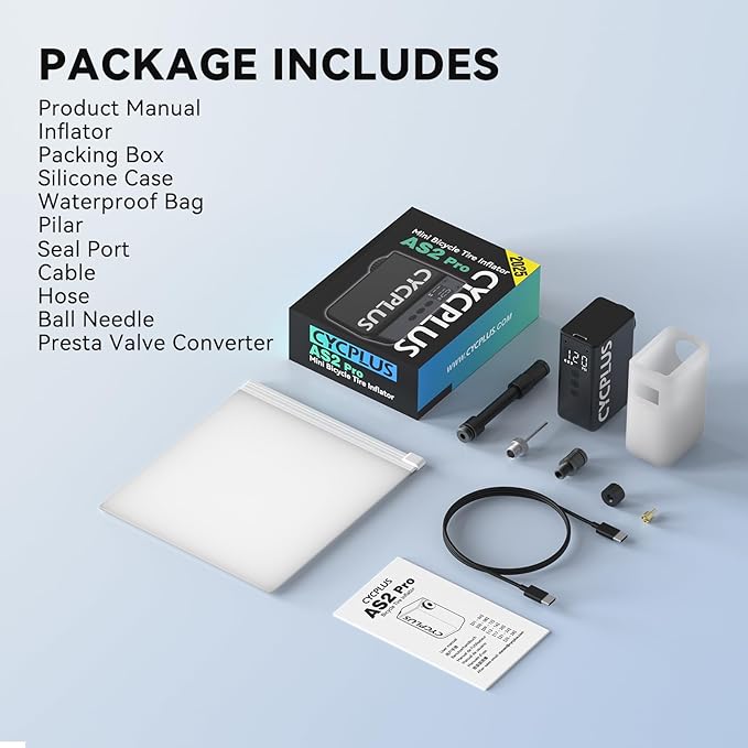 CYCPLUS AS2 PRO Tiny Bicycle Pump with Gauge, Max 120 PSI Electric Mini Pump, Auto Stop, with Presta and Schrader Valve for E-Bike, MTB, and Road Bike (2025 Updated Version)