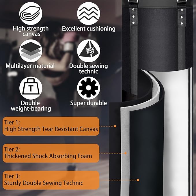 - EXCELLENT LOAD-BEARING CAPACITY: Our heavy-duty punching bags have four durable climbing straps sewn to the four side, This structure supper sturdy and more durable than other hanging punch bags,Not easy to tear, and has twice the Load-Bearing capacity of other kicking bags! it's strong enough to take years of constant blows