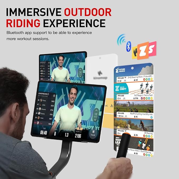 - Support Fitness APP: With a built-in sensor,this stationary bike support multiple fitness app,which can track your real-time sports data,such as time,speed,RPM,distance and calorie. These fitness apps offer a variety of exercise courses, enabling you to personalize your workout plan and add entertainment to your fitness routine