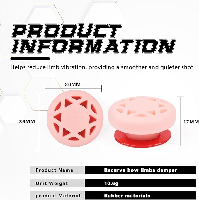 - Reduce vibration: Superior vibration and noise reduction for solid-limb recurve bows Helps produce a smoother and quieter shot by greatly reducing vibration caused from your limbs.