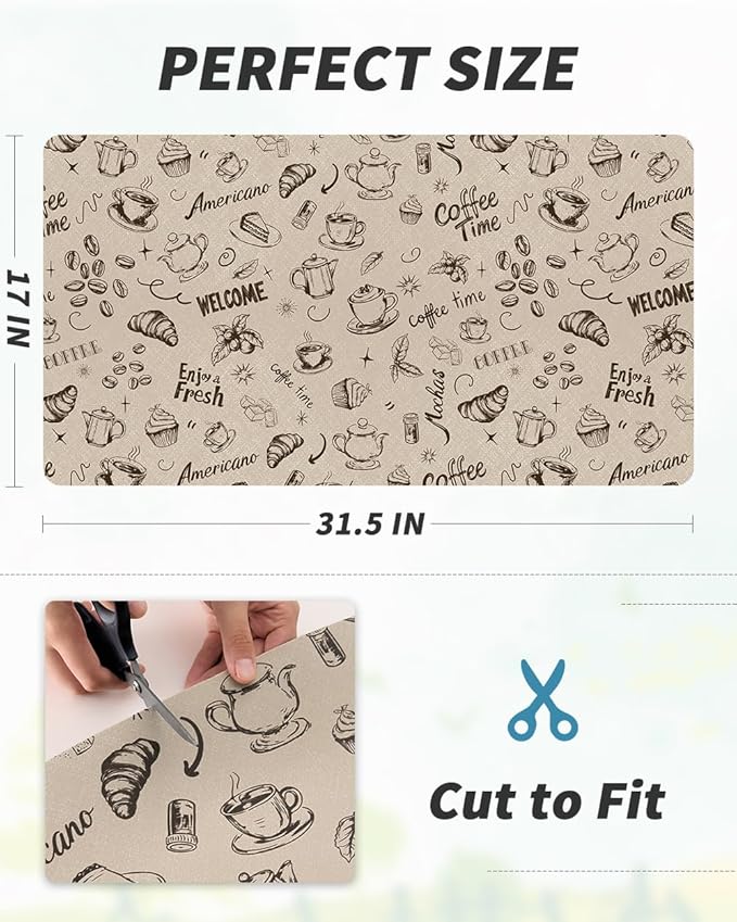 AMOAMI Coffee Mat Hide Stain Rubber Backed Absorbent Dish Drying Mat for Kitchen Counter - Fits Under Coffee Maker & Espresso Machine (17X31.5, MILK TEA)