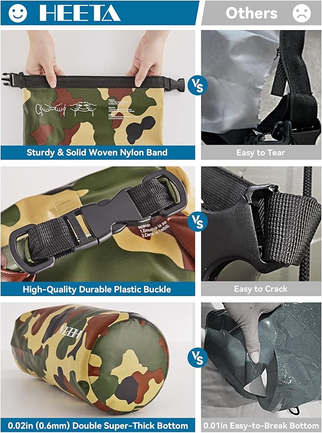 • Durable - Made of 0.02 in (0.5 mm) thick upgraded wear-resistant PVC material, it's suitable for all kinds of outdoor activities. Waterproof bag is well adapted to various weather and environment