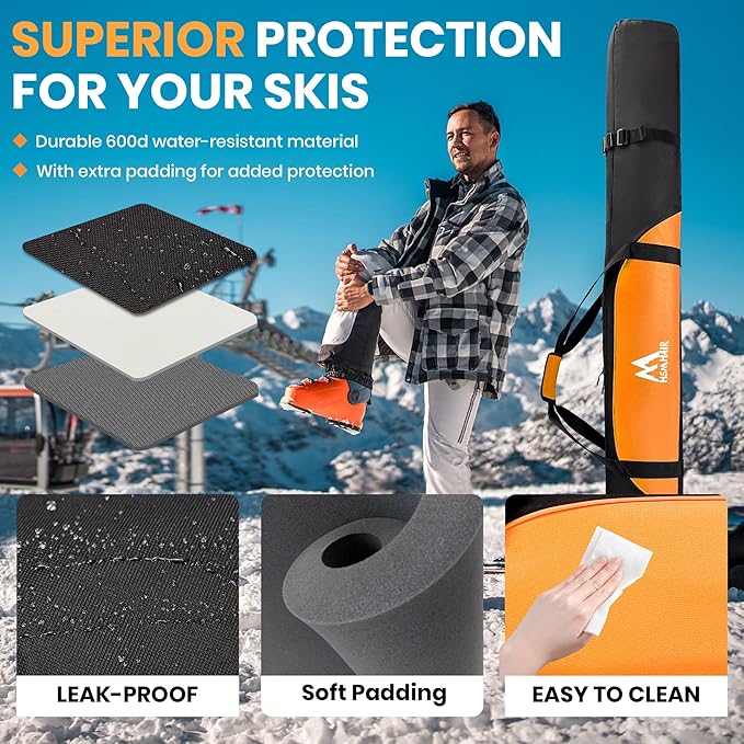 - Water-Resistant This ski travel set features a water-resistant design, ensuring your gear stays dry and safe from snow, rain, or wet conditions. Ideal for outdoor skiing enthusiasts who want to keep their equipment in pristine condition