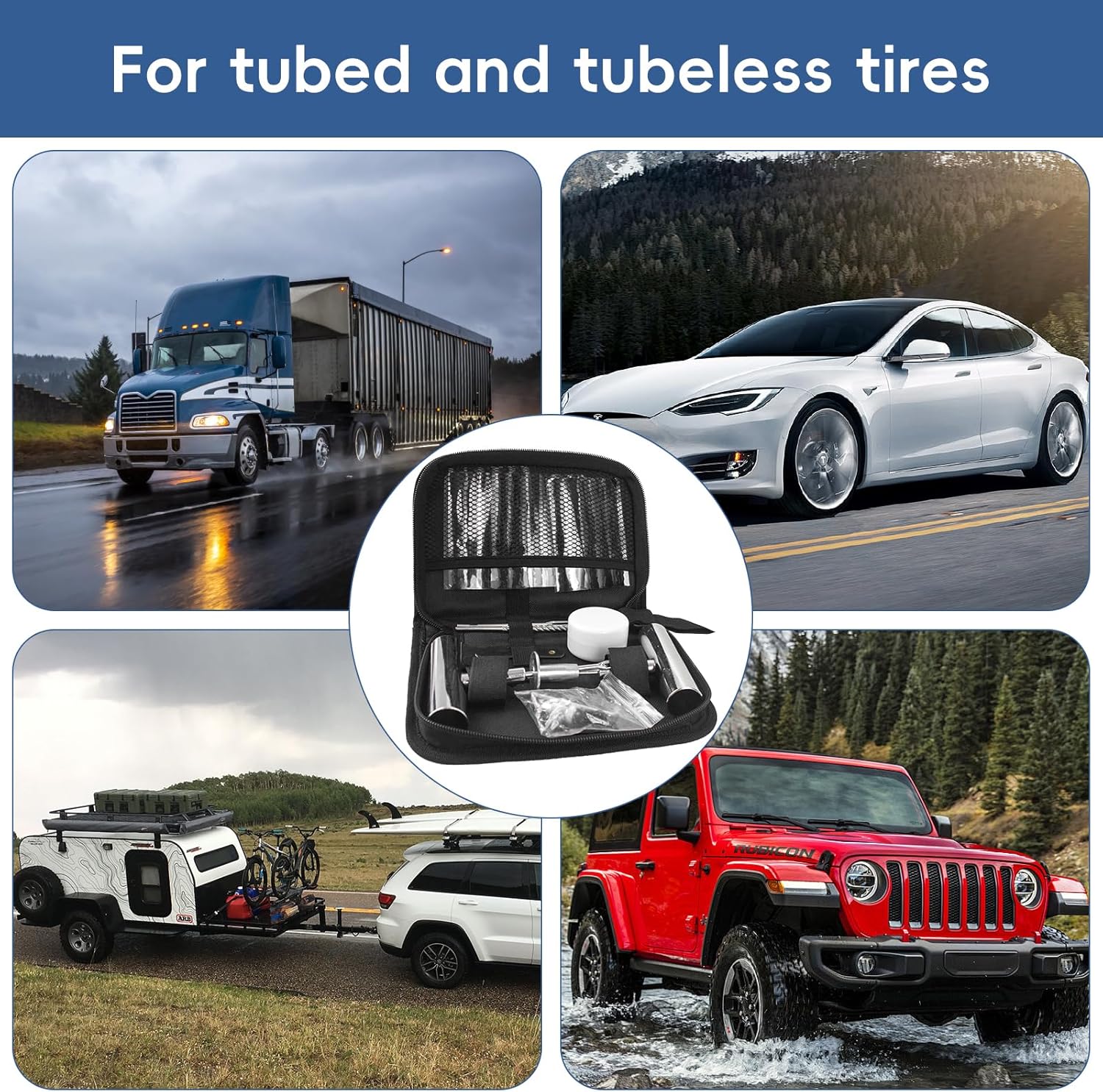 - Durable and Safe: The tire puncture repair set has great adhesion, flexibility, shock absorption, and is not easy to age, providing a long shelf life. It can withstand the toughest repairing and achieve the best tire air tightness.