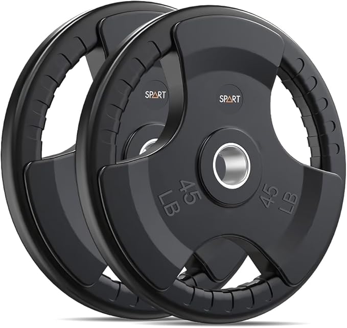 - đź’ŞFEATURE: SPART weight plates have a solid iron core and slide rubber surface. This design can protect the floor from damage and ensure enough weight when you do exercise. The strong steel ring insert can help you assembly the barbell easily. The three holes are designed for grip according to your hands and you can do weightlifting exercise with single plate as well.