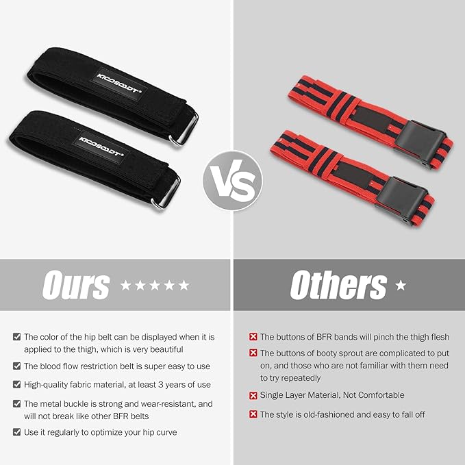 - 【Comfortable and Long-lasting】 Booty bands Velcro design allows for easy size adjustment, catering to all users. The sleek design ensures effortless tightening and loosening without causing any skin pinching, unlike bands with bulky buckle designs.With high resistance that maintains its elasticity over time, our Blood Flow Restriction Bands are durable and ideal for women's butt workouts. Make a one-time purchase and enjoy more than 3 years of reliable use, saving you money in the long run.