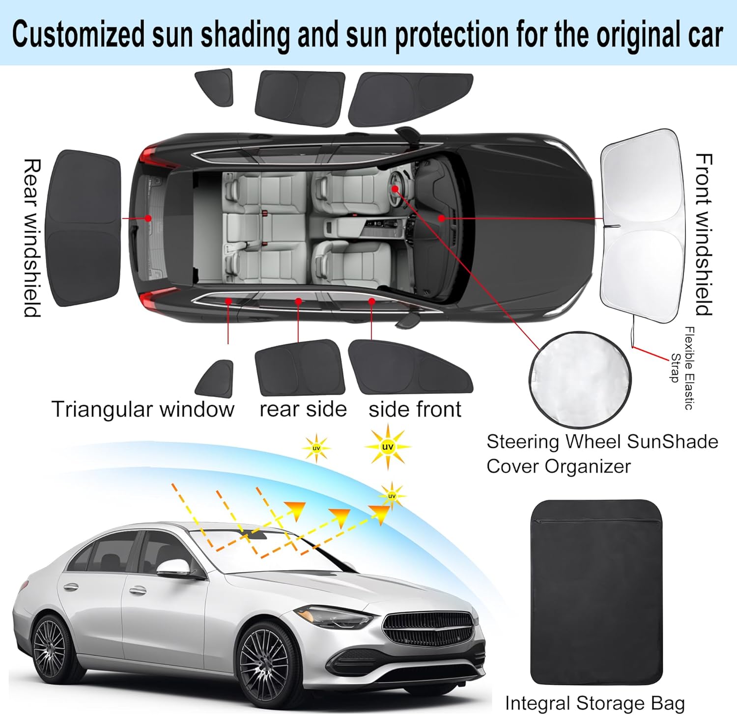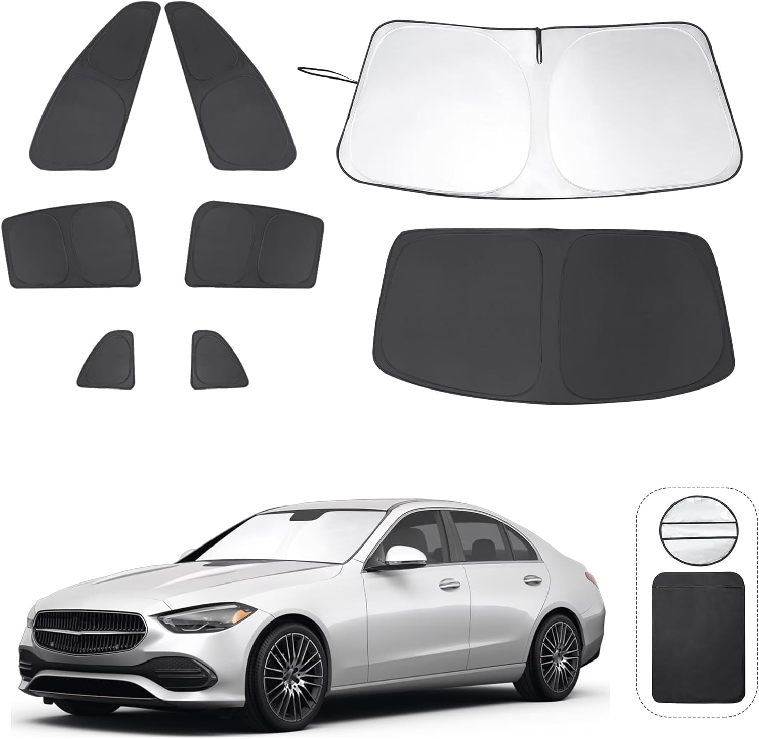 - Customized Design:The sun shade custom fit for Mercedes Benz C Class W205 C250 C300 C400 2015-2021.Our window shade is according to the car size design,perfectly fit your car and does not need to trim.windshield sun shade solve the problem of light leakage and incompatibility of the old umbrellas.The sunshade designed for Mercedes Benz C Class W205 C250 C300 C400.