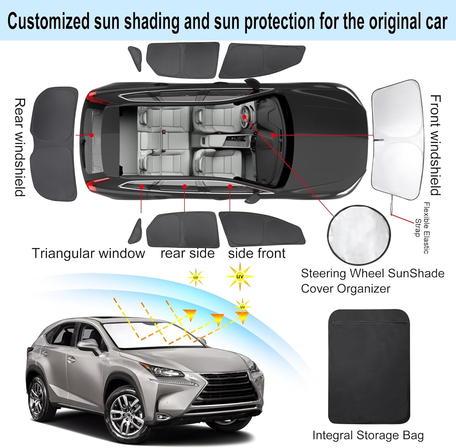 - Customized Design:The sun shade custom fit for Lexus NX300h/NX300/NX200t 2015-2021.Our window shade is according to the car size design,perfectly fit your car and does not need to trim.windshield sun shade solve the problem of light leakage and incompatibility of the old umbrellas.The sunshade designed for Lexus NX300h/NX300/NX200t.