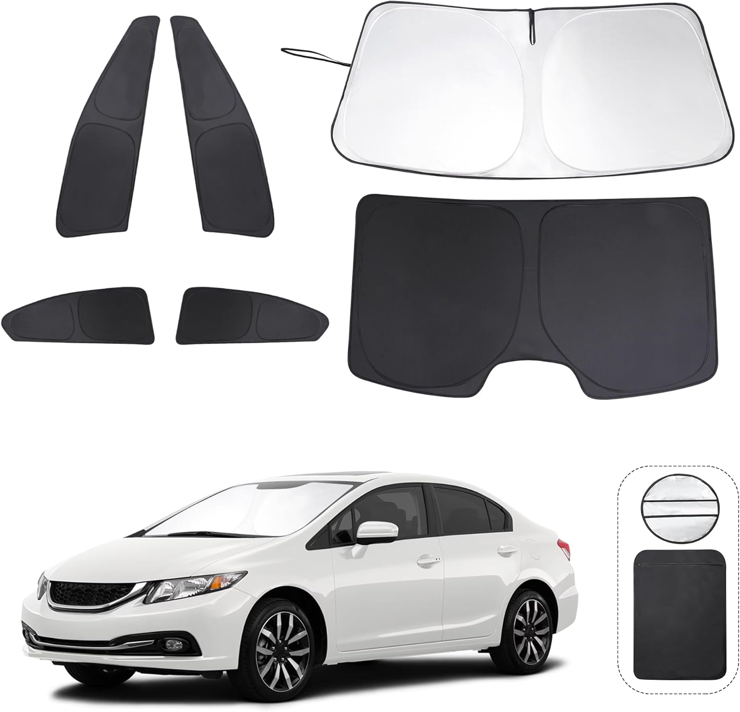 TINGLU Window Shades for Honda Civic 2012 2013 2014 2015 Accessories Car Side Full Windows Windshield Sun Shade Sun UV Rays & Privacy Protection for Camping,Napping,and Relaxing 6PCS