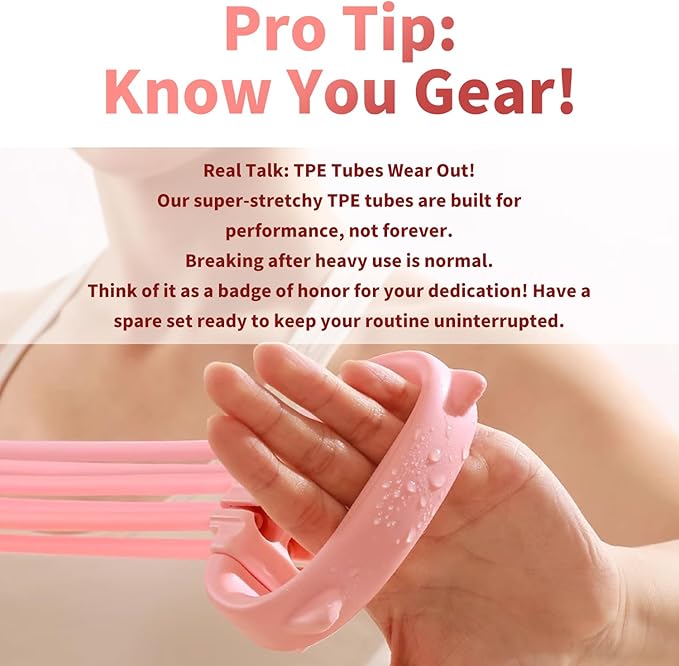 - Pro Tip: Know Your Gear! Our tubes are made of super-stretchy TPE – that's what gives you the awesome resistance & feel! Like any high-performance material under constant tension, TPE tubes will eventually wear out and break with regular use. This is normal and expected. The more you crush your workouts, the sooner you might need a fresh set! Keep rocking it! 💪