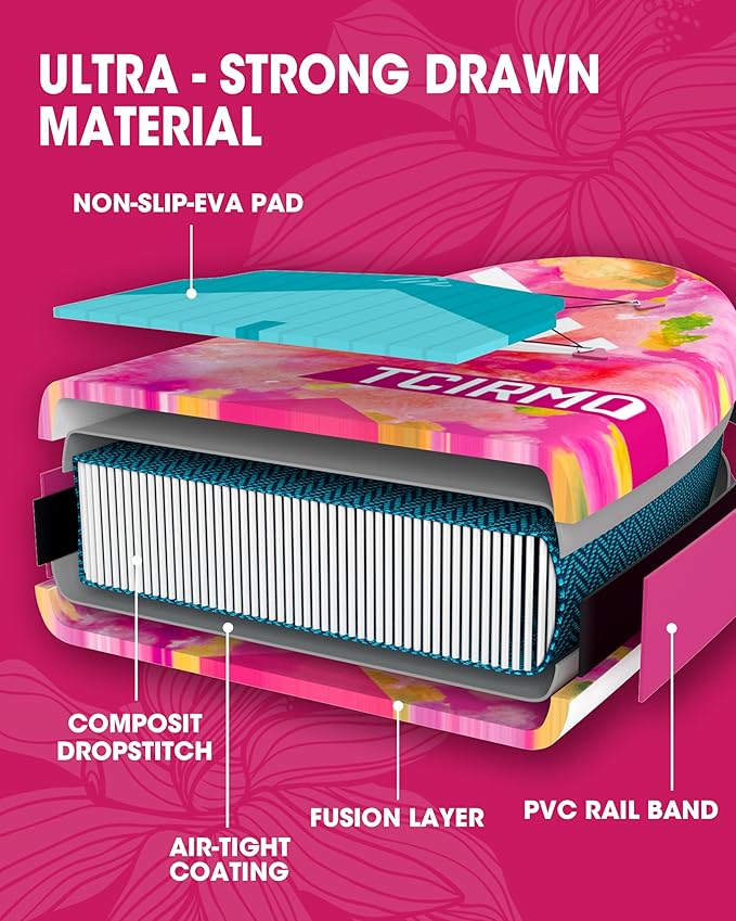 - 【WELDED RAIL TECHNOLOGY】: The Heat-Welded Rail Technology creates a completely airtight, mechanically bonded seam without the risk of glue weakening over time. This makes inflatable paddle board stronger and longer lasting.