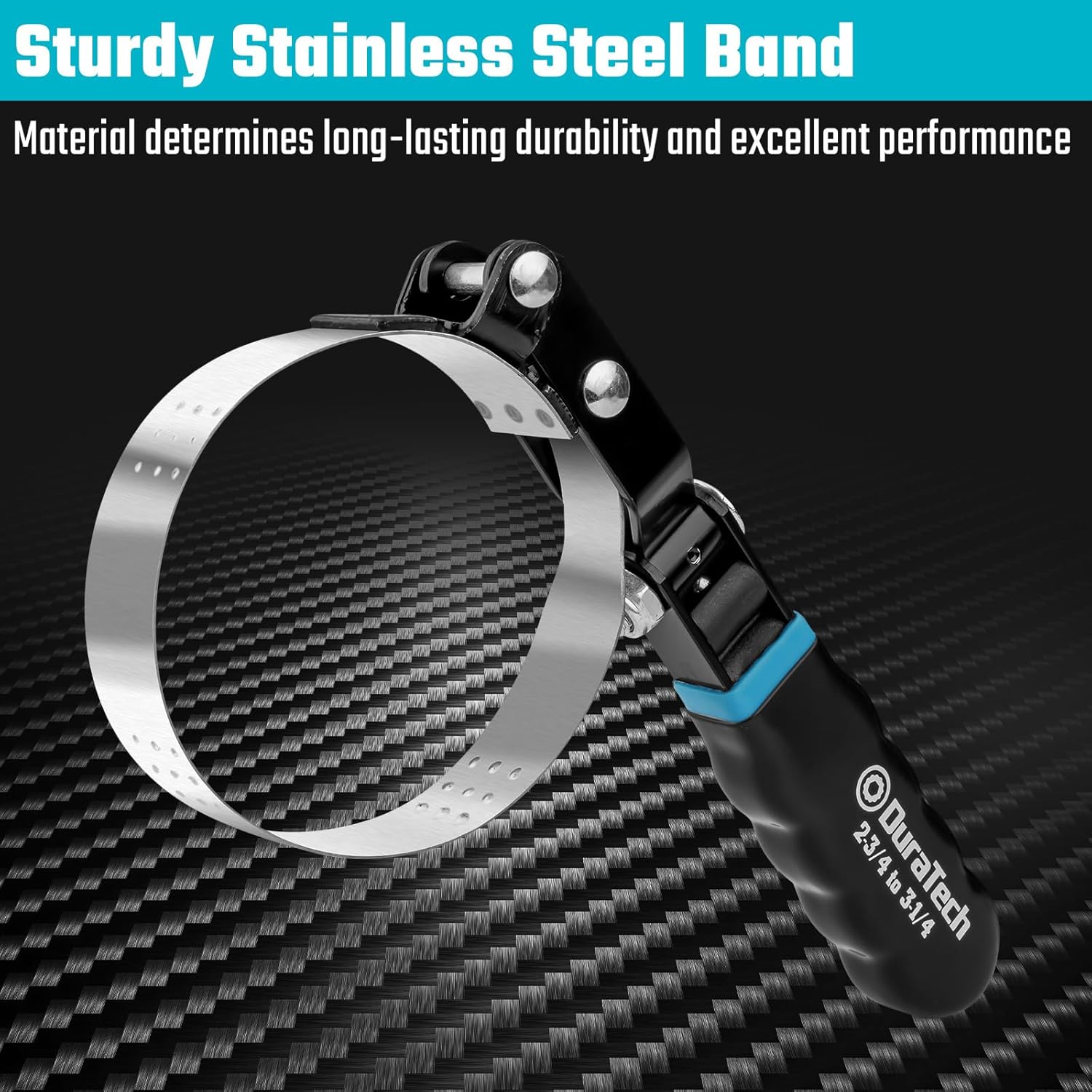 - Exceptional Grip: The Oil Filter Wrench features a sturdy stainless steel band with dimpled texture, providing superior grip that prevents slipping and ensures precise, effective operation while tightening the wrench on oil filters