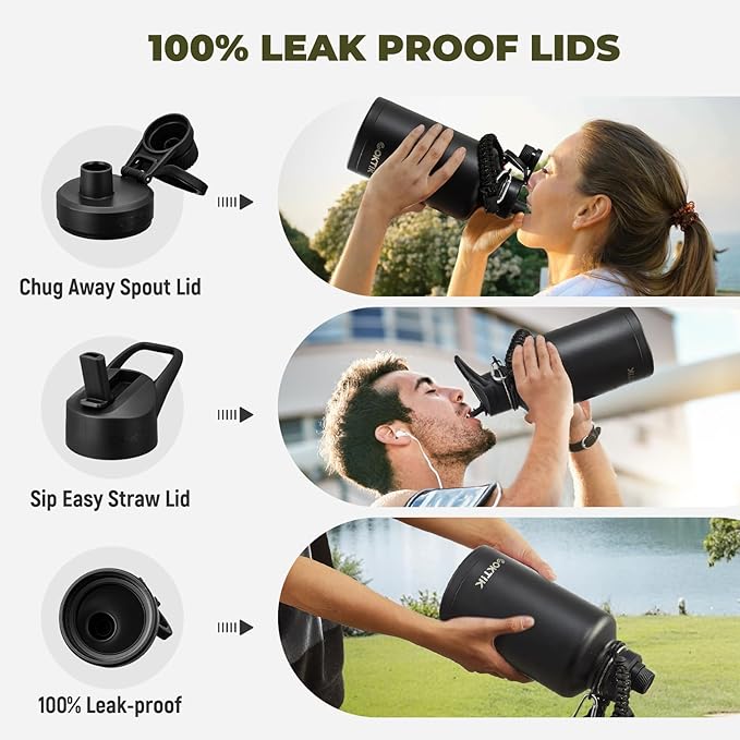 - Full Seal Leak-proof Lids: two different lids are complete LEAK PROOF & design for easy drink.Ideal for sports, fitness, and any occasion. The spout lid for easy drinking and seals shut for no leaks when you're on the go. The straw lid makes it easy to enjoy spill-proof sips, and package come with a alternative straw & a straw brush for easy cleaning