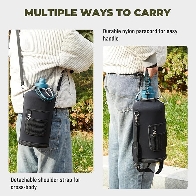 - What You'll Get: Buy 2 pack one gallon insulated water bottle, independent carton packaging,get double accessories (Carrying Pouch, Straw Lid with 2 Straws & Straw Brush, Spout Lid, Paracord Handle, Bottle Brush). We offer Continuous After-sales Service and 100% customer satisfaction against any leakage or insulation failure