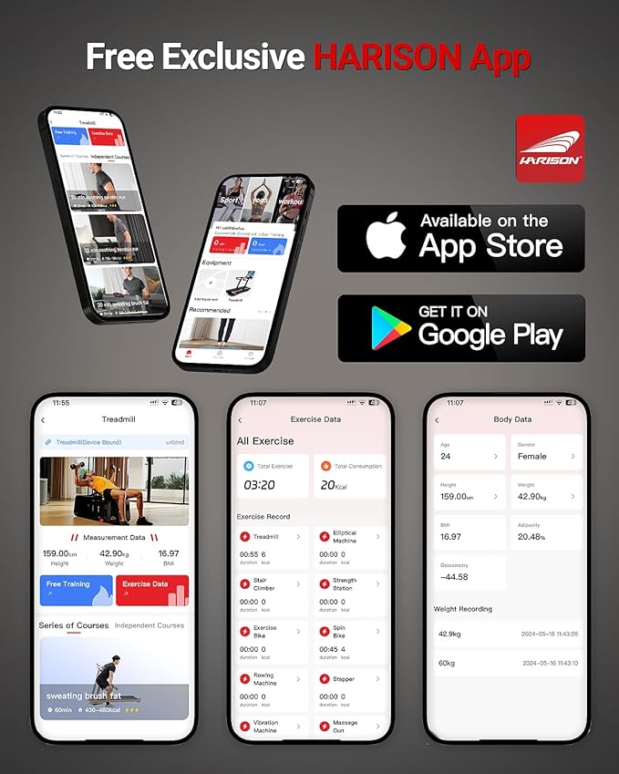 - HARISON Workout Courses: Transform your fitness journey with HARISON Workout Courses by downloading the HARISON App from our website, Play Store, or App Store. Our expert trainers will work closely with you to create a customized program for your elliptical machine, ensuring that each workout is aligned with your goals for maximum results.