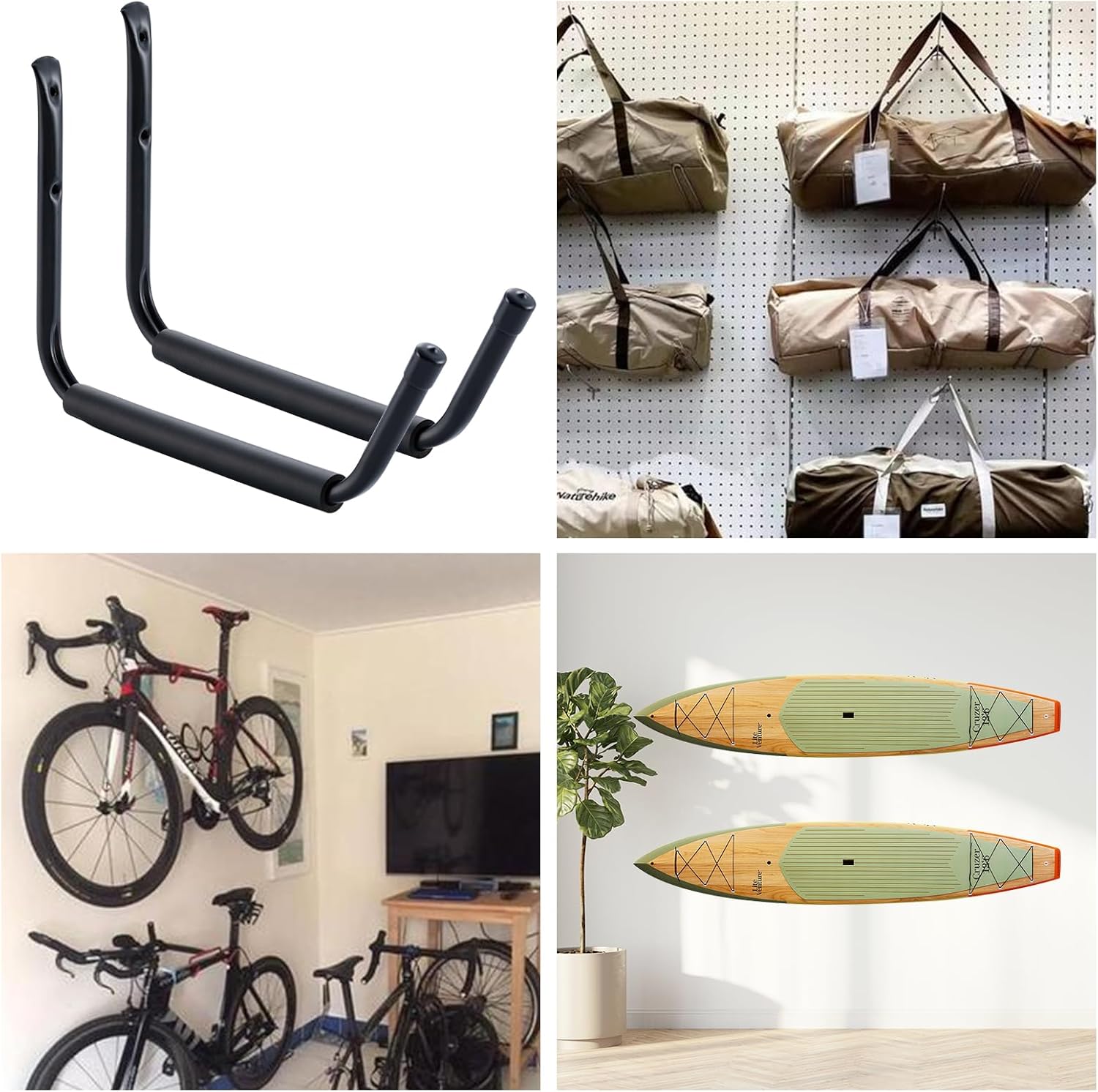 - 100LB Heavy-Duty Steel Construction These garage storage hooks are made of round tubular steel with a no-welding process, ensuring exceptional sturdiness. Each hook boasts a safe working load of 100 lbs, reliably supporting heavy items like kayaks, canoes, or bicycles for long-term use.