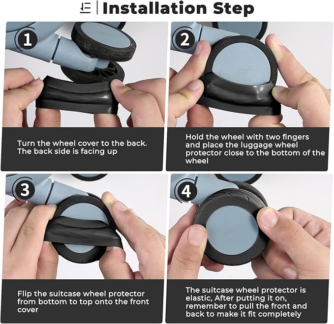 - [Fits Most Suitcases] These suitcase covers for luggage wheel are suitable for suitcases with wheel diameter between 2.0-2.4"(50-60mm),the distance between the luggage wheel and wheel base fender should be more than 0.07"(1.8mm),and the distance between the luggage wheel and axle should be more than 0.05"(1.2mm) ,This Suitcase wheel cover for luggage Suitable for 4x2 double wheels, not suitable for 4x1 single wheels luggage