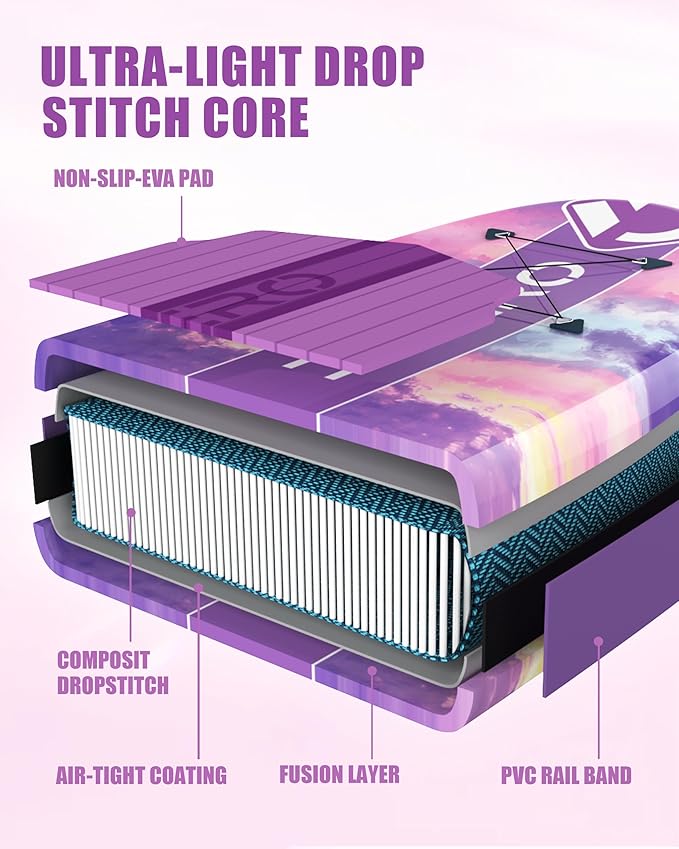 - 【More Paddle Board Accessories】We include all the accessories in our package. Our premium iSUP accessories include the super wide paddle board, pump, adjustable paddle floating, 3 removable paddle board fins, ankle leash, travel waterproof backpack, cell waterproof waist bag, 1 valve wrench, instruction manual.