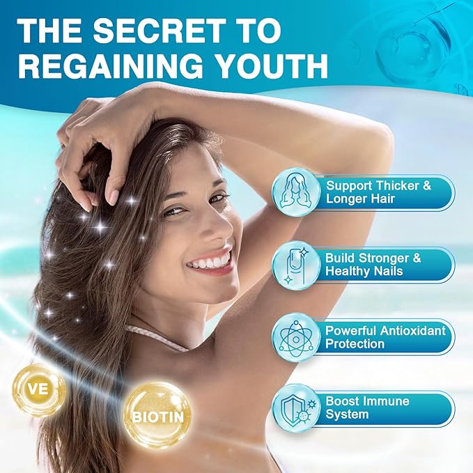 - UNLOCK RADIANT SKIN: Our multi collagen peptides with vitamins C & E provide powerful antioxidant protection & promote natural collagen synthesis, boost immune system. Hyaluronic acid works togeter to improve skin elasticity & hydration, smooth fine lines & wrinkles. Plus, biotin strengthens hair follicles & boosts keratin production, supports healthy hair & nail regrowth. Nourish yourself from the inside out & restore your natural glow!