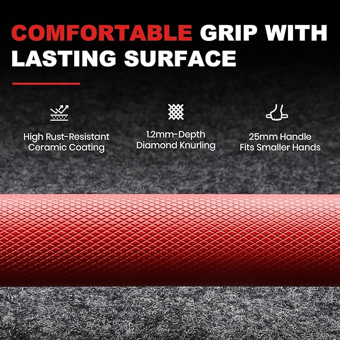 - Better Grip Feel with Lighter Knurling and Narrower Shaft: 1.2mm deep diamond knurling offers enough gripping power while delivering comfortable grip feel. 25mm diameter shaft is easy to hold for smaller hands. 7.9” long knurl at either side helps to place your hands at correct positions.