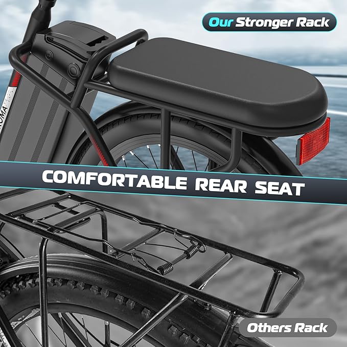 - 【Removable Battery】Enjoy long-distance riding with the 48V lithium-ion battery, allowing for up to 25 miles per charge for 3 hours. The adult electric scooter is equipped with the BMS system that provides 14 types of protection, making our battery safer and more cycle life. This electric bicycle have two charging methods, remove the battery to charge or direct charging on the bike, ebikes for adults is your best choice.