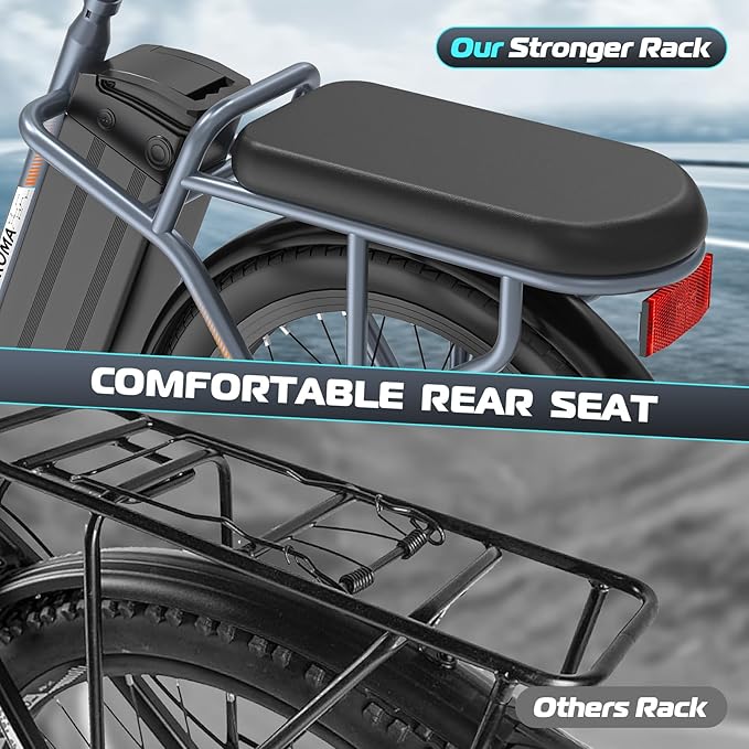 - 【Safe Ebike Configuration】20 inch electric bike for adults adopts a front shock absorber to smooth out bumps, rocky and uneven terrain. The added fenders protect your bike away from mud and water. The smart LCD display provides battery life real-time data. Other reliable e-bike designs like mechanical dual disc brakes, LED headlight and electric horn system and reflectors, safeguard your safety.