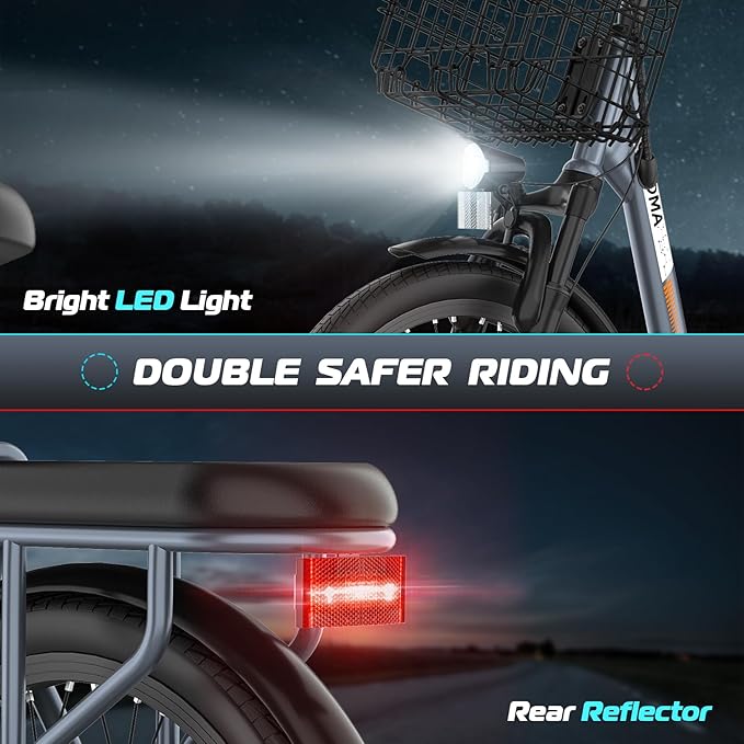 - 【Ergonomic Adult Electric Scooter with Seat】The electric scooter equipped with 2 Seats, the front seat is height adjustable and the back seat is made of soft leather, which can carry two adults at the same time. The Caroma K2 is an electric commuter bicycle designed for adults. It also features a spacious front basket for backpacks, flowers, books, fruit and more, making it ideal for quick errands and shopping.