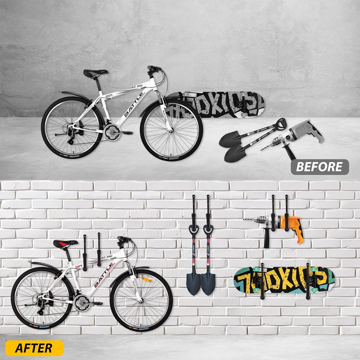 - Easy to Install: Our 15 inch ladder hooks for garage wall are easy to fit and come with 12 PCS screws and 12 PCS expansion tubes, simply fit the shelf to the studs and tighten the bolts with a screwdriver