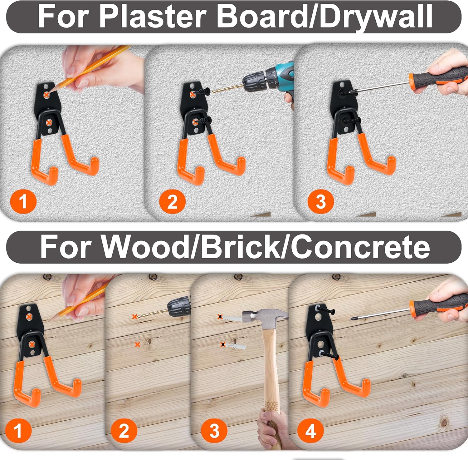- SPACE-SAVING STORAGE HOOKS - Maximize garage, workshop, or basement storage by neatly hanging small ladders, power tools, extension cords, hoses, and more. Keep your space clean and free of clutter