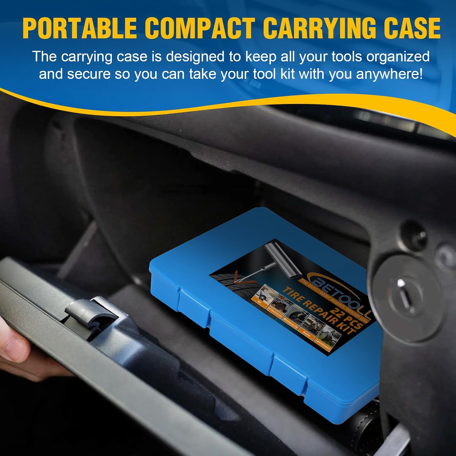 BETOOLL Universal Tire Repair Kit, Heavy Duty 22 Pcs Emergency Tire Plug Kit, for car Motorcycle, Truck, ARB,ATV, Tractor, RV, SUV, Trailer