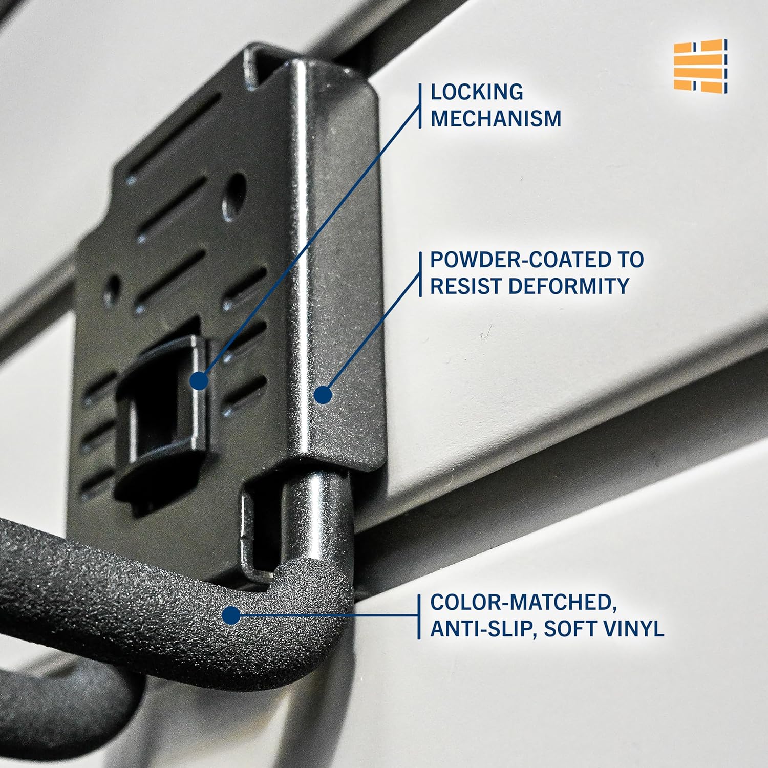 - 𝙀𝙣𝙝𝙖𝙣𝙘𝙚𝙙 𝙂𝙧𝙞𝙥 & 𝙎𝙚𝙘𝙪𝙧𝙞𝙩𝙮: Heavy-duty hooks are equipped with a reliable locking mechanism and feature a color-matched, anti-slip soft vinyl coating for added grip and protection. Snap hooks are made with thick-gauge wire and feature a snap-in design that allows them to effortlessly attach and stay secured to the wall.