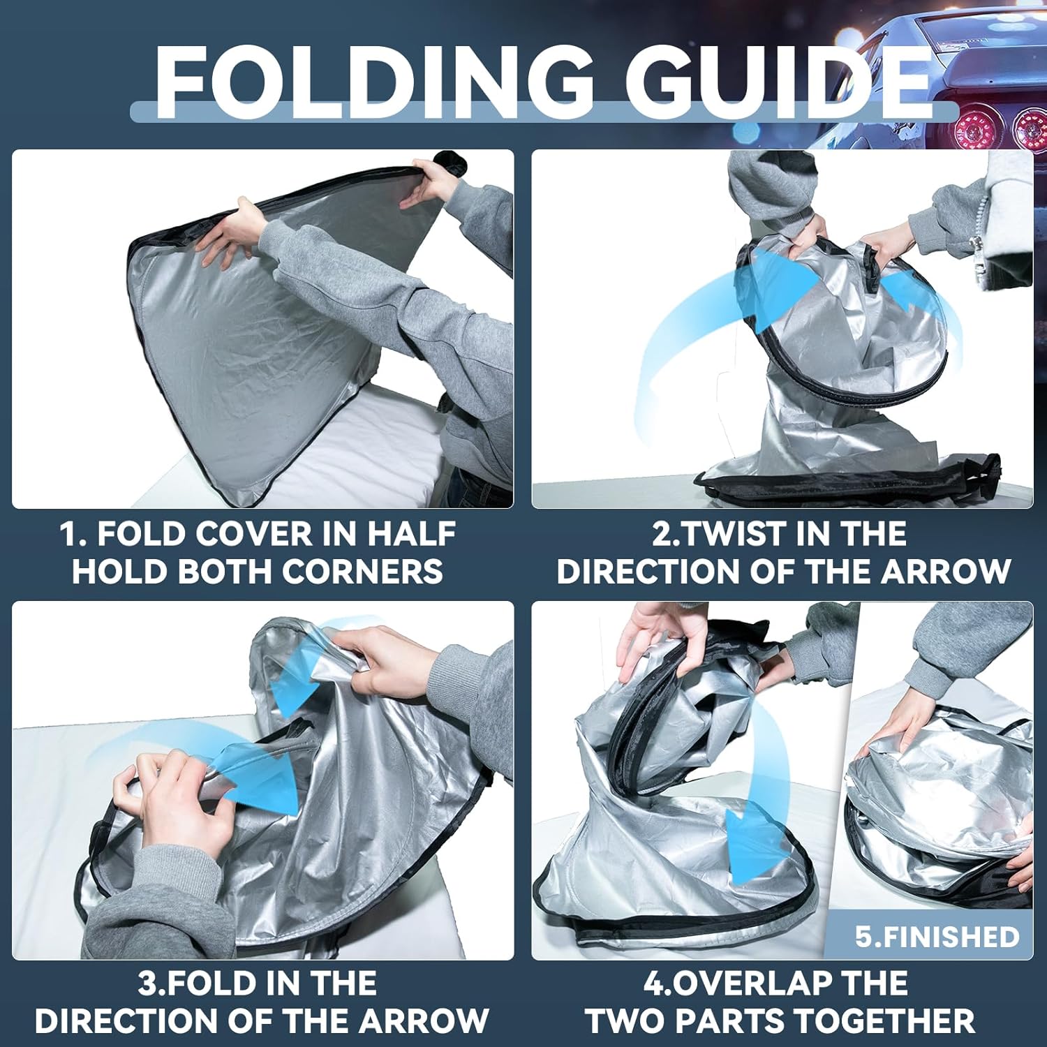 - 【The latest upgrade】The windshield sun shade is made of 240T fabric with a thicker density, Nano coating, 4 anti-UV layers, and better reduce of the heat and UV rays.Double D-shaped steel ring design, So useful is the sunshade that allows you to enter the car easily.