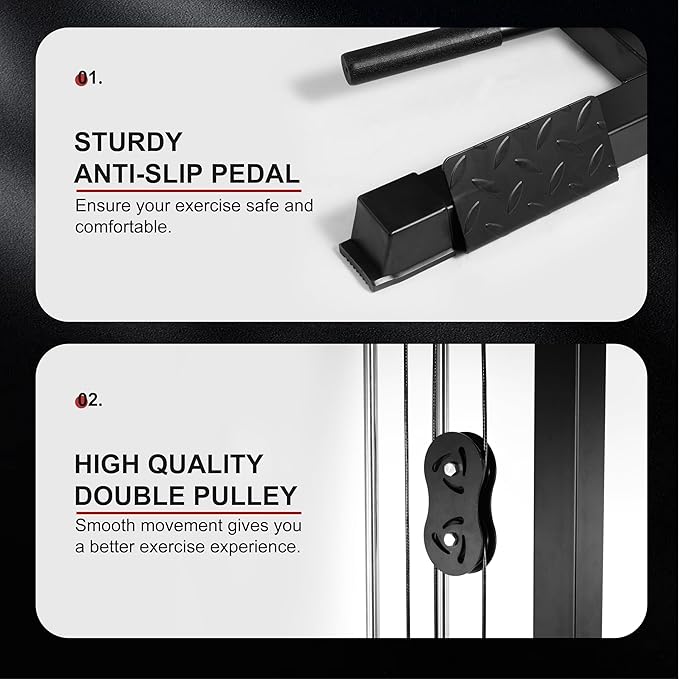 • 【Multi-functional LAT Tower】Set up with high and low pulleys for a variety of exercises, including seated rowing, seated and standing pull downs, biceps curls and other movements. Fully exercise your whole body muscles through training to meet your fitness needs.