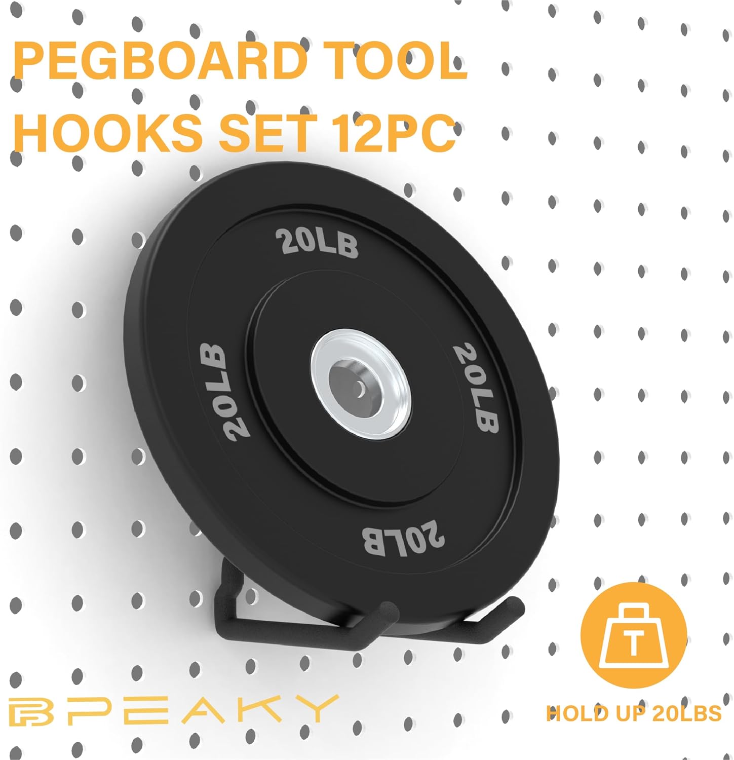 Heavy Duty Pegboard Hooks 12PC - Black Peg Board Hooks for Hanging Tools, Drill Holder, Only Fits 1/4" Peg Board, Ideal for garages, workshops, Craft Rooms, Retail Stores