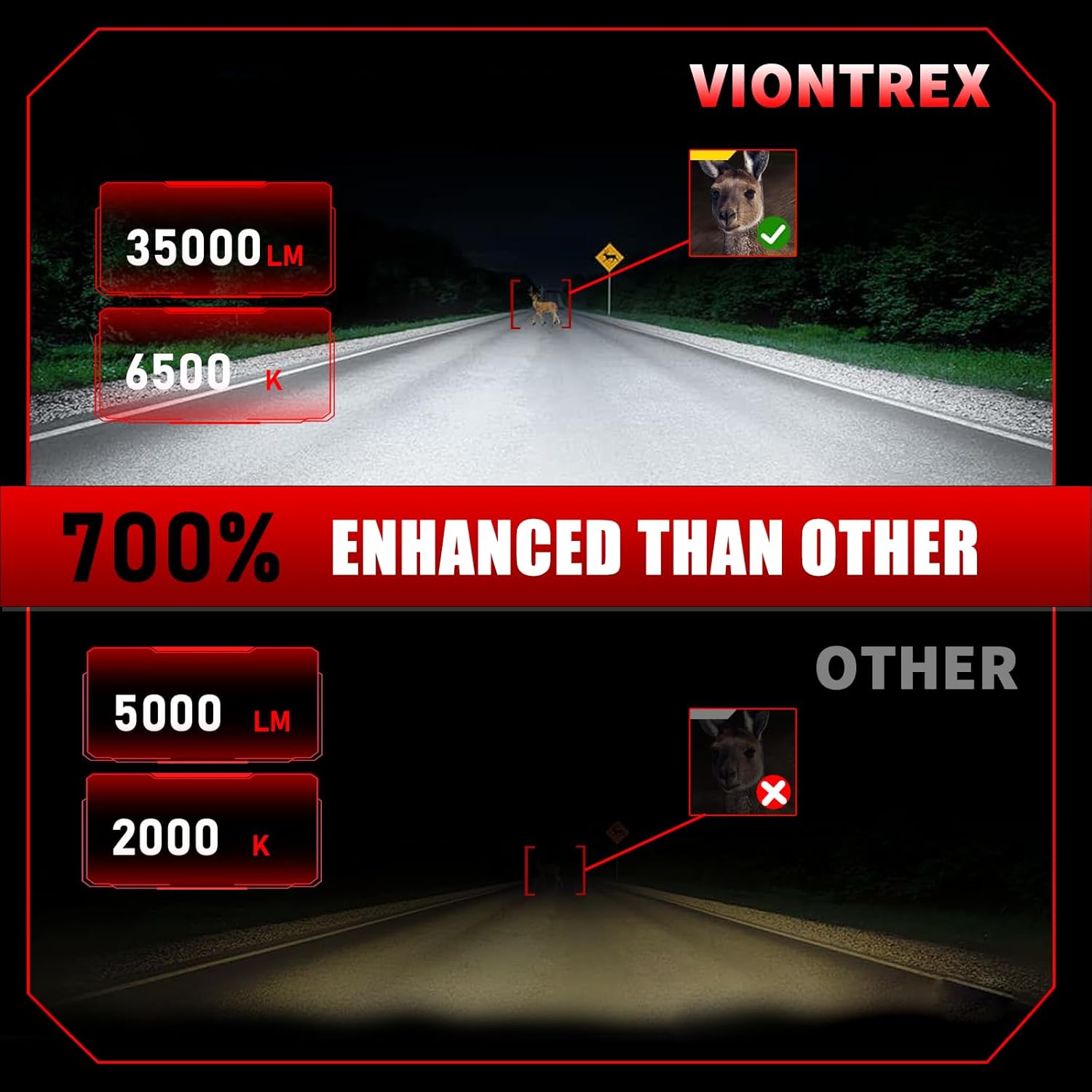 - [New Version, Enhanced Visibility, Safer]: New chip, 35000LM, 6500K cold white light, visibility enhanced by 700% compared to industry standards, IP68 sealed design, free use in extreme weather conditions, reduced redundant circuit design and automatic fault switching, improving system reliability and ensuring your driving safety