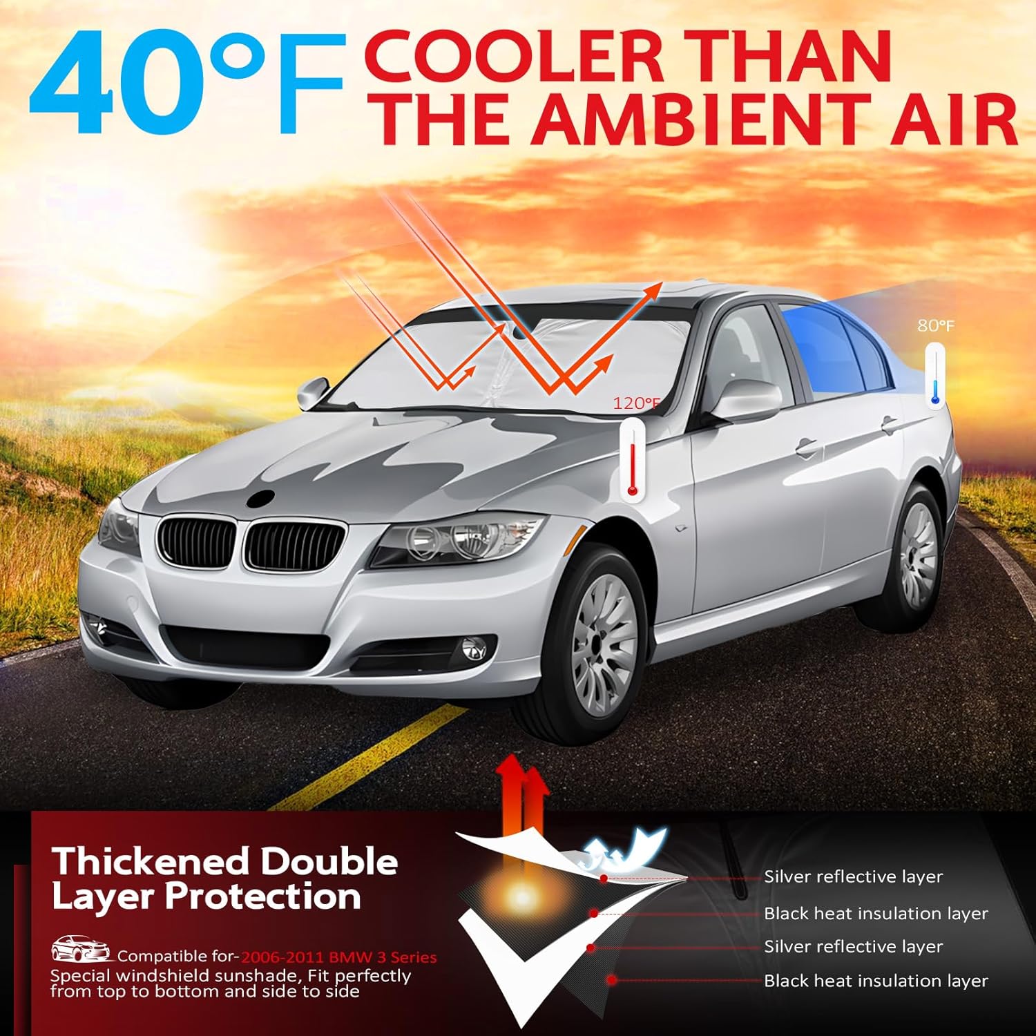 - KAYZT windshield sun shade is precise custom fit for 2006 2007 2008 2009 2010 2011 BMW 3 Series 330i 328i 320i 325i 335i Thoroughly covers every corner of the windshield, Tailored to accommodate rear view mirror, Ensuring a seamless and snug fit without obstruction, Must have car accessories for BMW 3 Series 328i 335i 320i 330i 325i