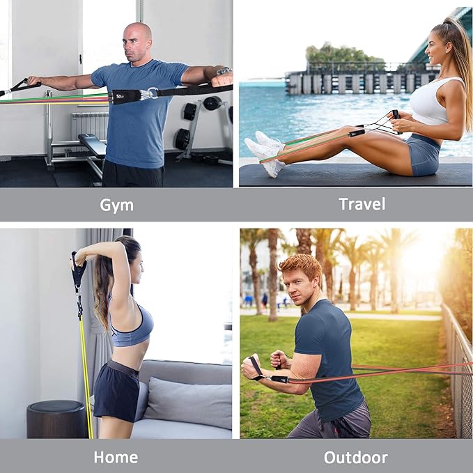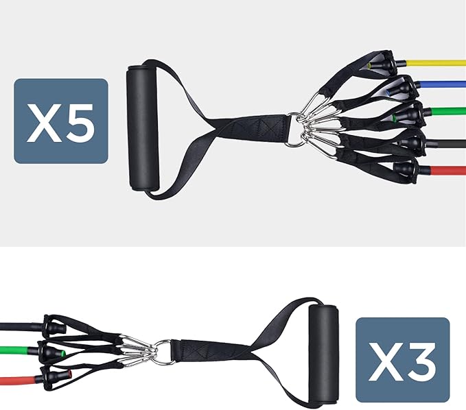 - What's Included: 5 durable TPE bands, 2 cushioned handles, 2 ankle straps, 1 carrying bag, and 1 exercise guide