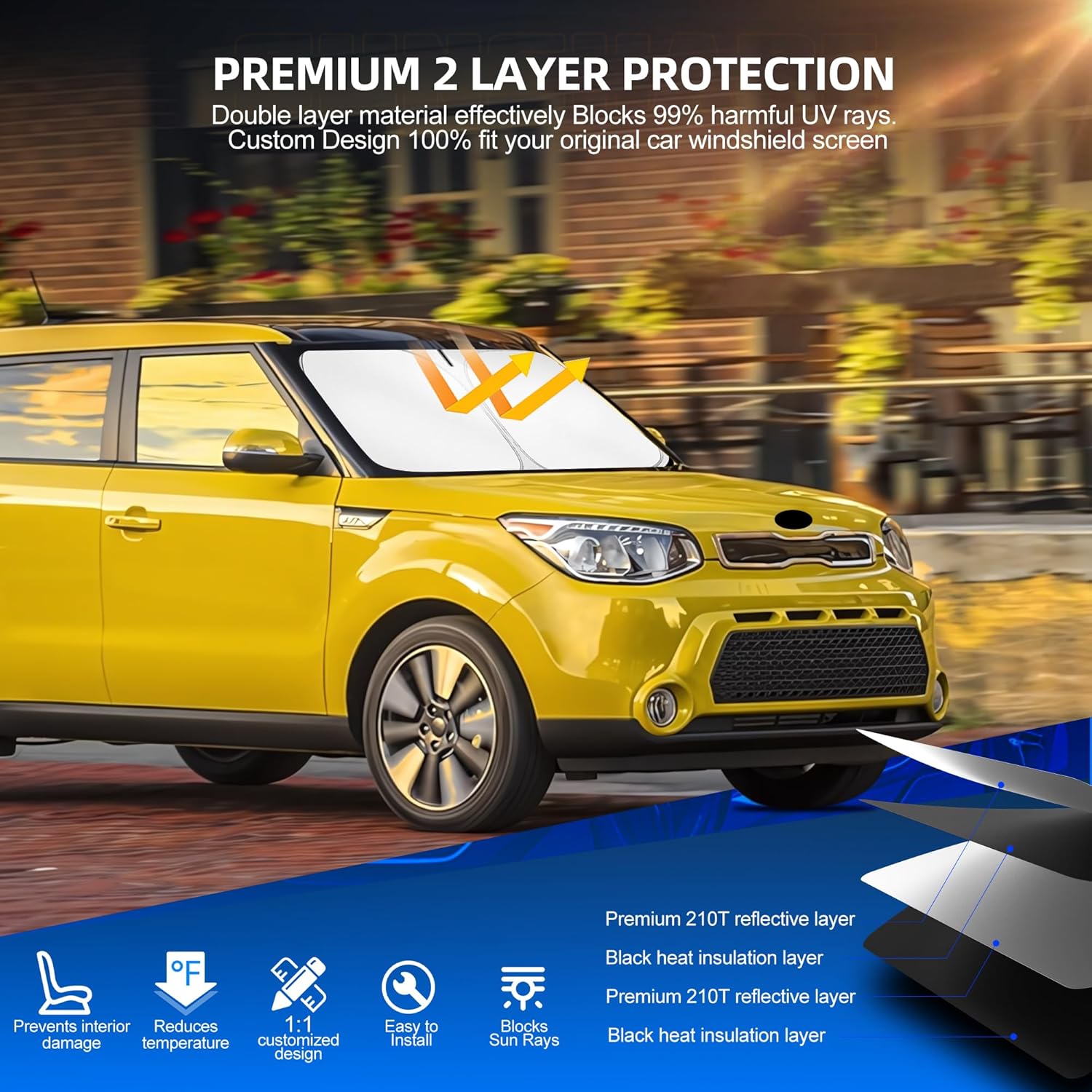 Windshield Sun Shade for Kia Soul 2014-2019 Foldable Sunshade Custom Fit Front Window Car Interior Accessories Protector Blocks UV Rays