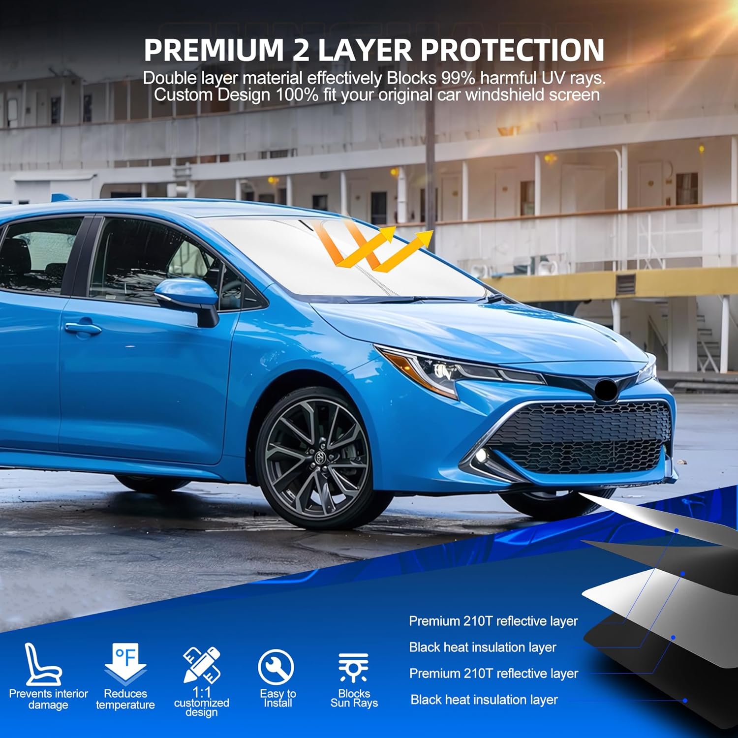 Windshield Sun Shade for Toyo-ta Corolla 2014-2019 Foldable Sunshade Custom Fit Front Window Car Interior Accessories Protector Blocks UV Rays