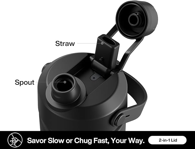 - 2-in-1 Leakproof Lid: Features a straw for easy sipping and a spout for effortless pouring or chugging; Toss it in your bag or car, offering no spills and endless thrills