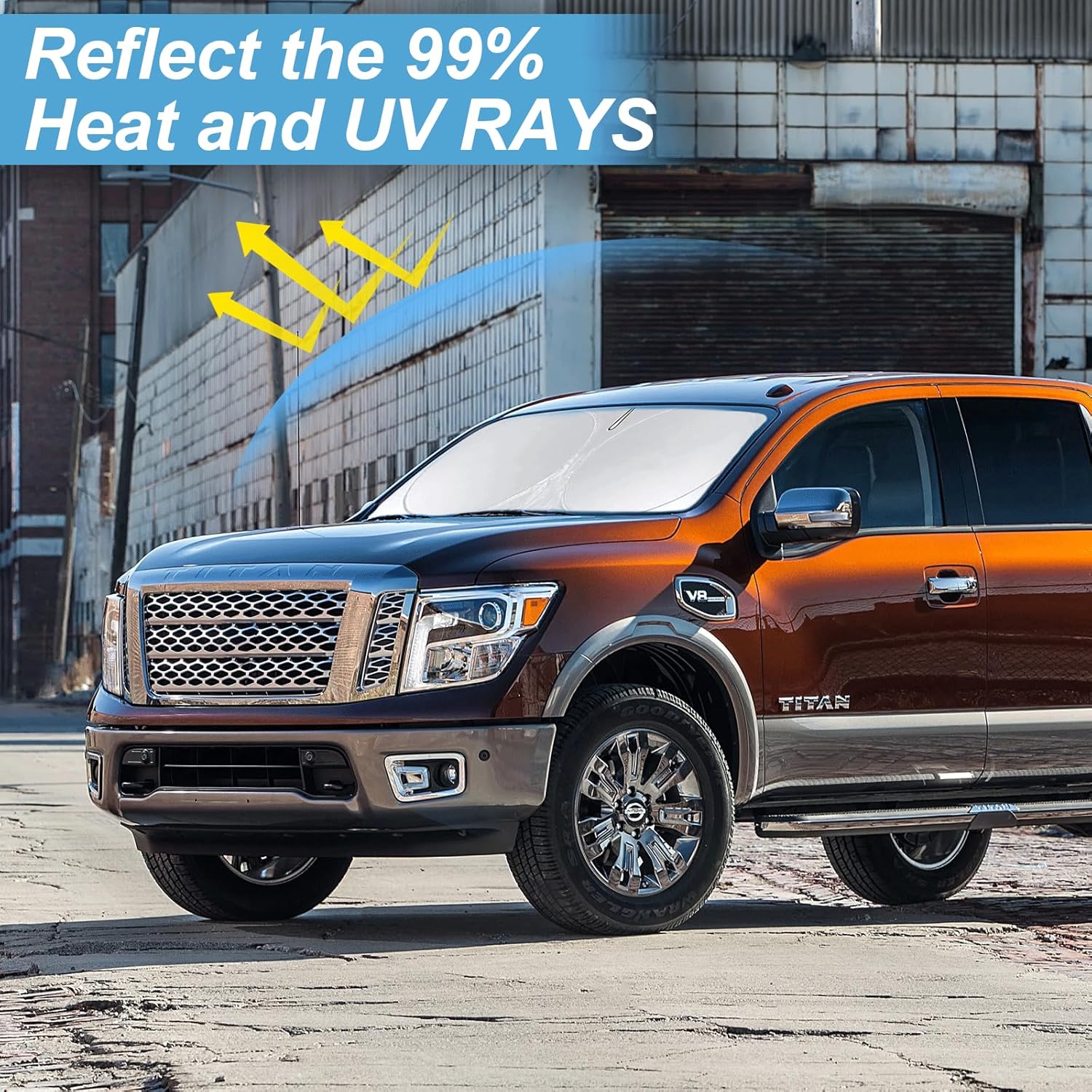 - [CUSTOM-FIT FRONT WINDSHIELD SUNSHADE] Automotive windshield sun shade is Specifically designed,which for 2020-2023 2024 2025 Upgrade Nissan Titan accessories. We have several size of car sunshade. Please measure your car size and refer to our size before your purchase. Once installed it won't have gaps, sags or slumps like other car sun shade windshield