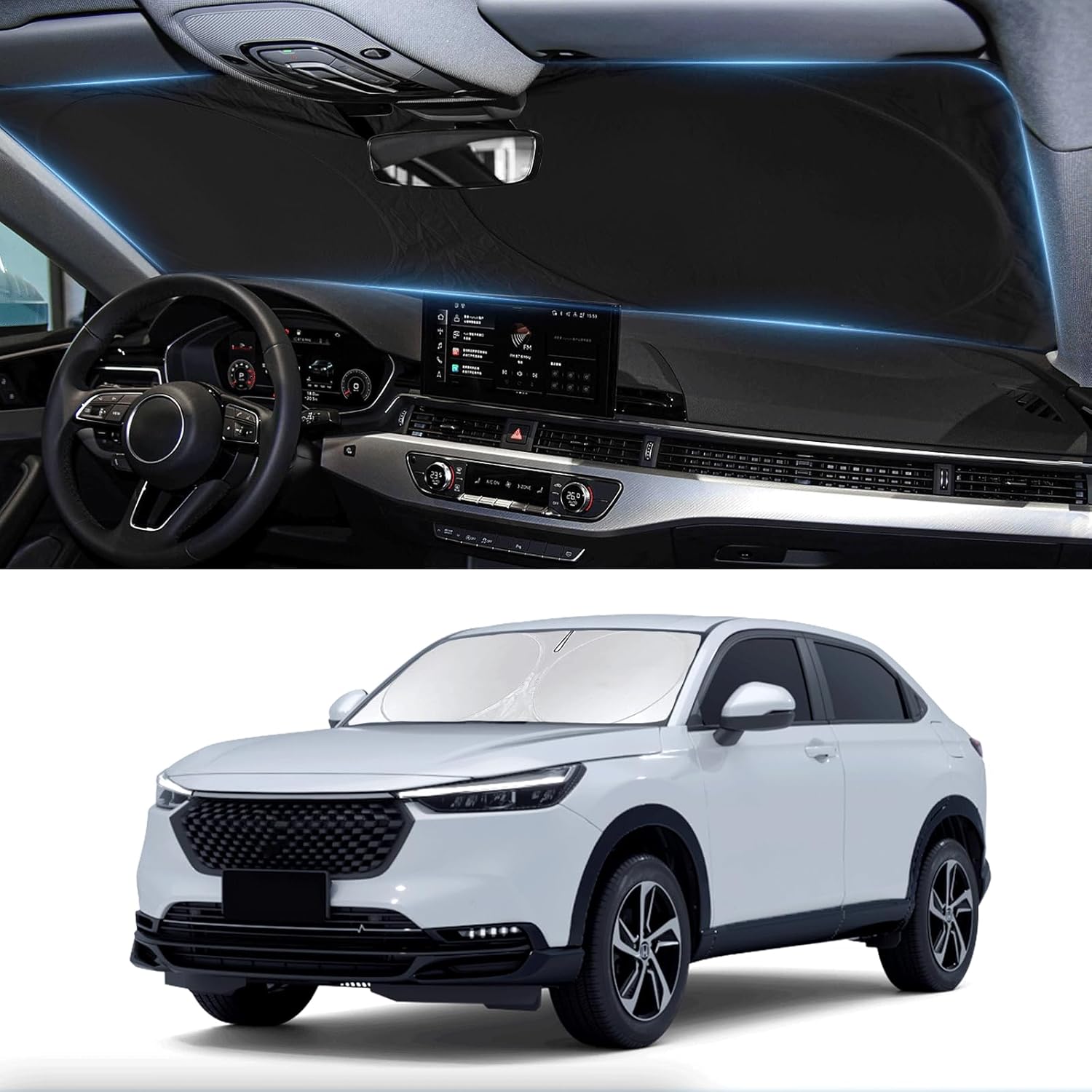 - [CUSTOM-FIT FRONT WINDSHIELD SUNSHADE] Automotive windshield sun shade is Specifically designed,which for 2021 2022 2023 2024 2025 HR-V (LX Sport EX EX-L) Accessories. We have several size of car sunshade. Please measure your car size and refer to our size before your purchase. Once installed it won't have gaps, sags or slumps like other car sun shade windshield